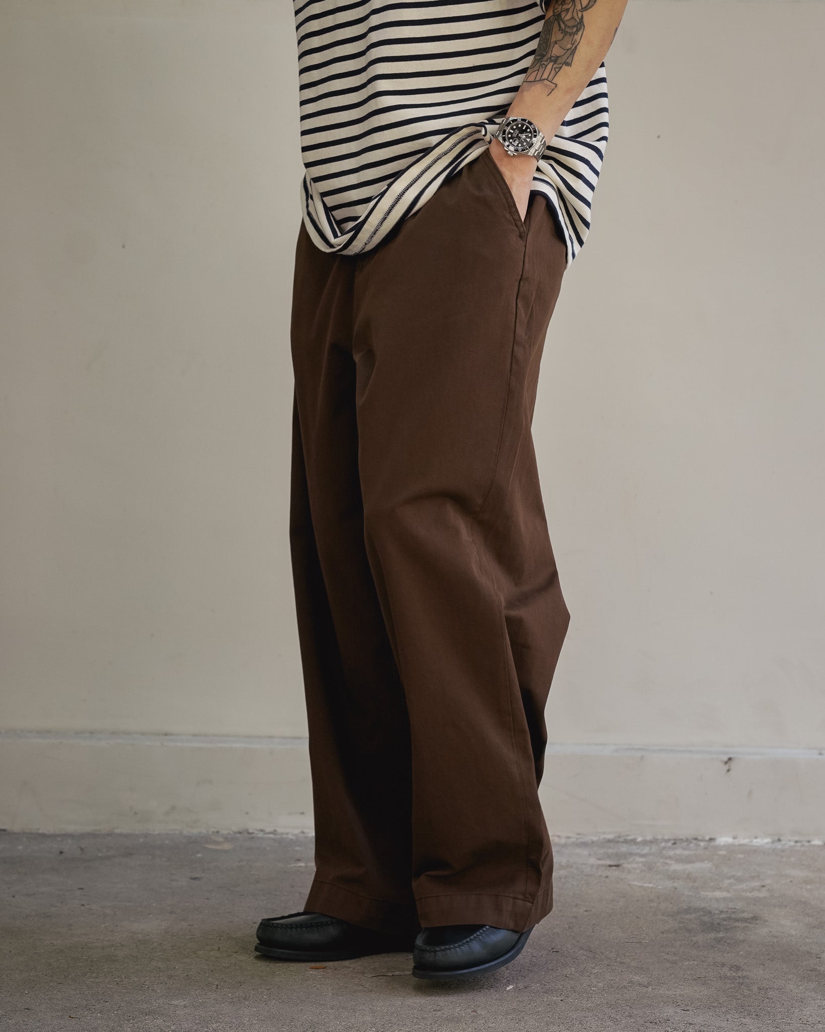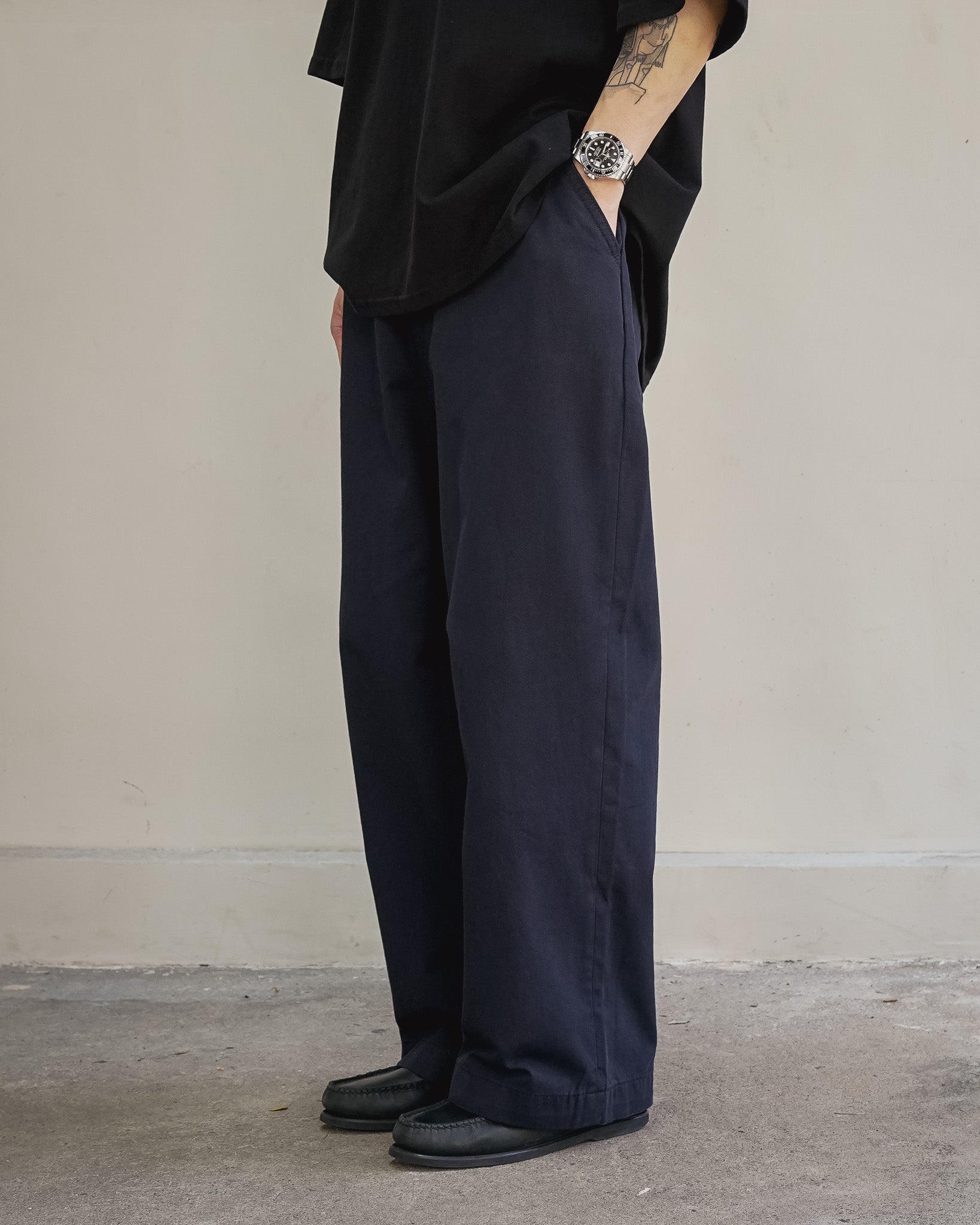 Mid-Waist Baggy Pants made from structured cotton twill, this pair is defined by reinforced crotch stitching — a deta...